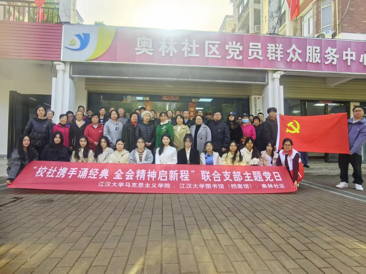 11月27日下午14:30,江汉大学马克思主义学院党委、图书馆(档案馆)党委与武汉经开区沌阳街道奥林社区联合...