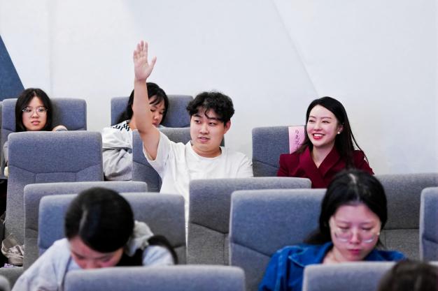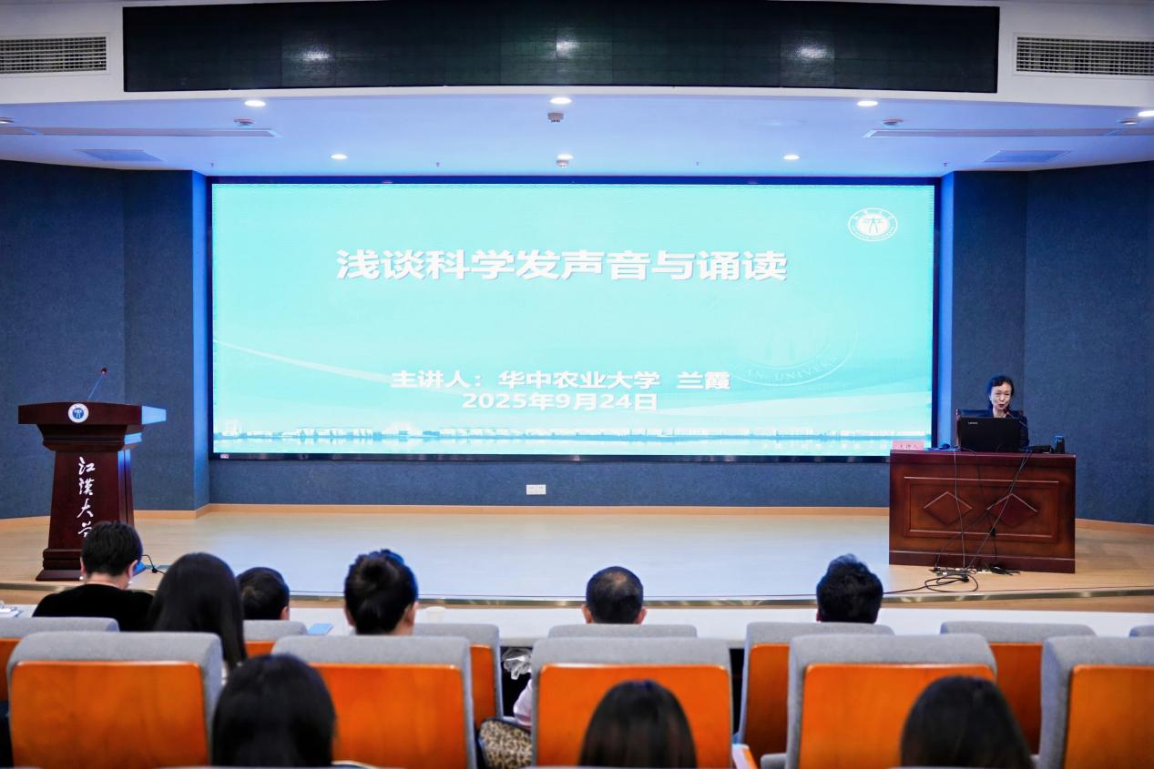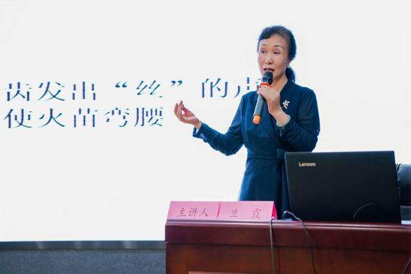 华中农业大学副教授、国家级普通话水平测试员兰霞,长期从事语言和文学方面的教学和研究工作,其主讲的公开课《魅力汉语》被评为国家级精品课程。她以“浅谈科学发声与诵读”为题,通过科学发声与诵读的分享,有针对性互动答疑,助力师生提升普通话水平,让大家在经典诵读中感受中华语言文化的博大精深。