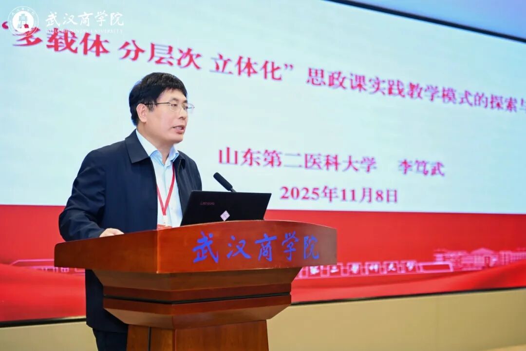 专家报告环节,仝华就“从2025年我国发表的三部白皮书中汲取增强思政课引领力的宝贵资源”、黄岭峻就“思政小课堂及社会大课堂有效融合的实践难点及突破思路”等论题作精彩阐述。大会交流中,马纪岗就“‘大思政课’视域下社会资源转化为教学、资源的开职探索”、 山东第二医科大学马克思主义学院院长、教授李笃武就“多载体 分层次 立体化”高校思政课实践教学模式的探索与实践、江汉大学马克思主义学院教授马兰就“科技伦理教育融入高校思政课教学理论与实践”、惠州学院马克思主义学院副院长、副教授罗泽荣就“本土红色文化融入大思政课的惠州实践探索”、新华网学术中国大区负责人晋琦冠就“新华网赋能人才成果传播,提升学术科研影响力”、武汉商学院马克思主义学院副院长、副教授刘宗劲就“开学第一课:马克思主义学院的担当和我们的探索”等作交流发言。武汉商学院科研处处长、马克思主义学院院长李平主持。