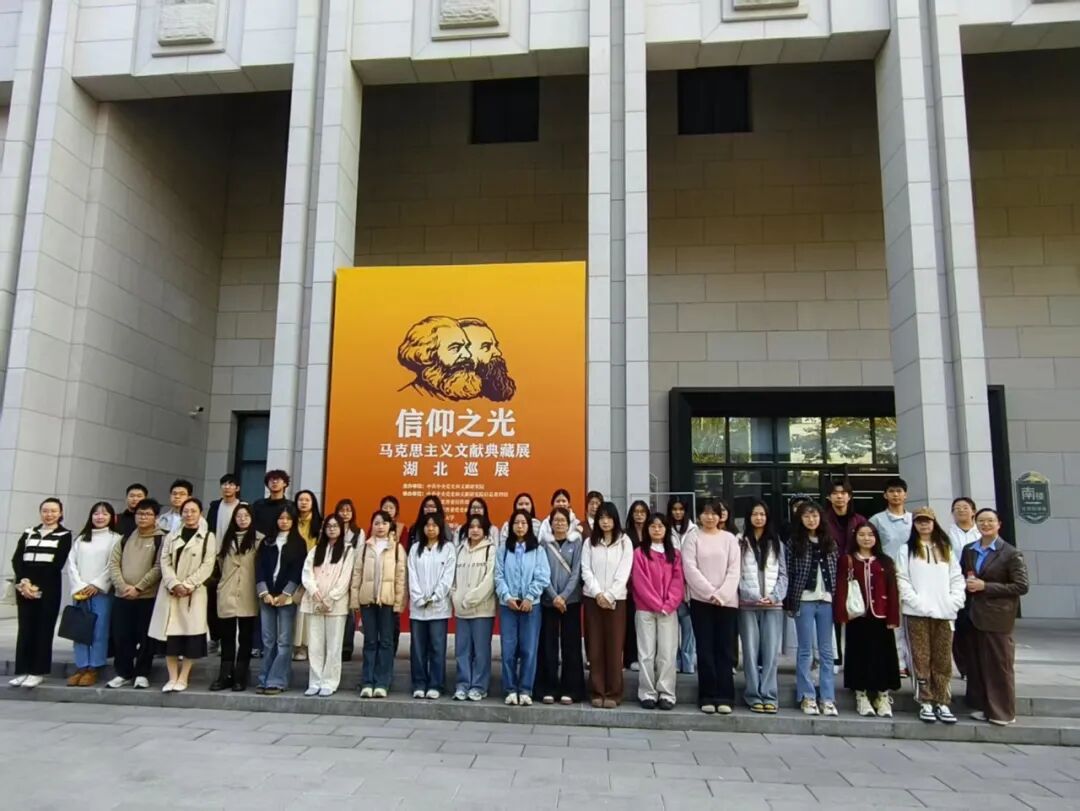 为深入学习贯彻党的二十届四中全会精神,2025年11月14日上午,学校组织师生赴华中师范大学参观“信仰之光——马克思主义文献典藏展”湖北巡展、与华中师范大学融媒体中心交流。校党委宣传部黄韵雅、马克思主义学院研究生辅导员周玉格、研究生教学管理部副主任王荣等老师带队,学校新媒体工作室全体成员、马克思主义学院2025级全体硕士研究生参加。