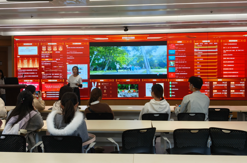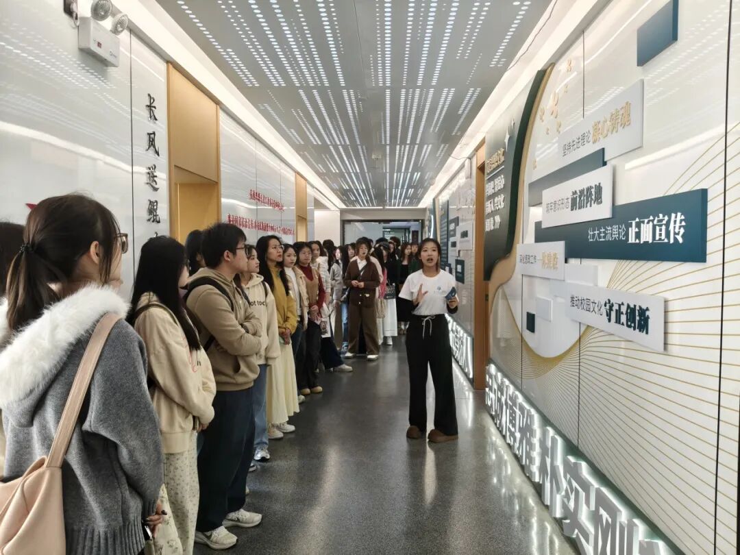 第二站师生来到华中师范大学融媒体中心。在讲解员的带领下,通过历史图片与实物资料了解到华中师范大学融媒体中心的发展历程和作为教育部首批教育融媒体试点单位的建设成果,以及新形势下宣传工作“举旗帜、聚民心、育新人、兴文化、展形象”的五大使命任务。