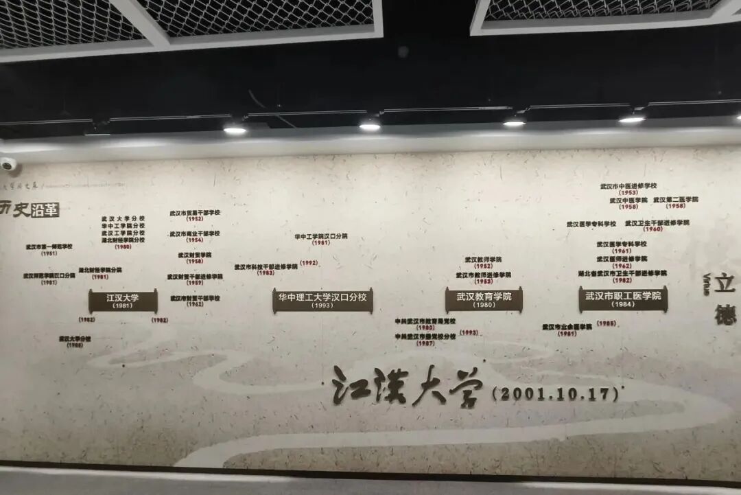 走进校史馆,仿佛翻开一部镌刻着岁月荣光的厚重典籍,记录着学校的发展历程,见证着一代又一代人的青春岁月。在讲解员的引导下,同学们通过珍贵的文字史料、鲜活的影像档案了解学校的前身1981年的原江汉大学和华中理工大学汉口分校、1952年的原武汉教育学院、1958年的原武汉职工医学院的历史发展。