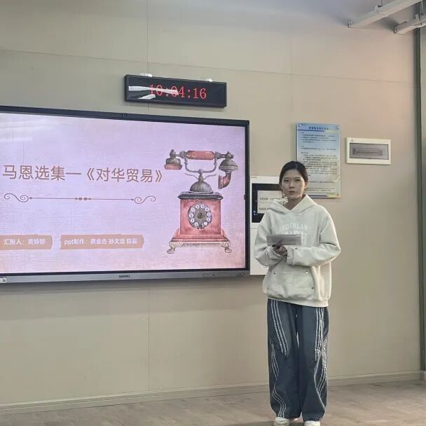 随后,3名学生围绕《鸦片贸易史》《对华贸易》《英人在华的残暴行动》三篇经典篇目汇报,以通俗生动的表达、条理清晰的梳理,系统解读,内容翔实、感染力强,引发全场共鸣。张浩老师认可学生选题聚焦性,现实关怀与学科意识,在文本解读中主动关联当代启示与思政教学实践,实现经典文本与现实应用的有效衔接,践行理论学习的实践价值。