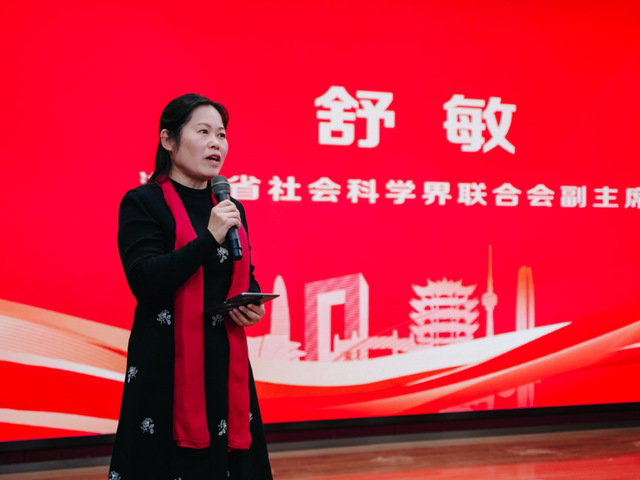 活动最后,湖北省社会科学界联合会副主席舒敏作总结讲话。她指出,本次武汉站活动主题鲜明、内容丰富、形式新颖,既有理论高度,又有实践深度,既有历史厚度,又有情感温度,充分展现了湖北理论宣讲工作的创新活力与深厚底蕴。她强调,全省社科界要以此次活动为契机,持续在深化、内化、转化上下功夫,推动总书记重要讲话精神落地生根、见行见效,为湖北加快建成中部地区崛起重要战略支点贡献更多智慧和力量。