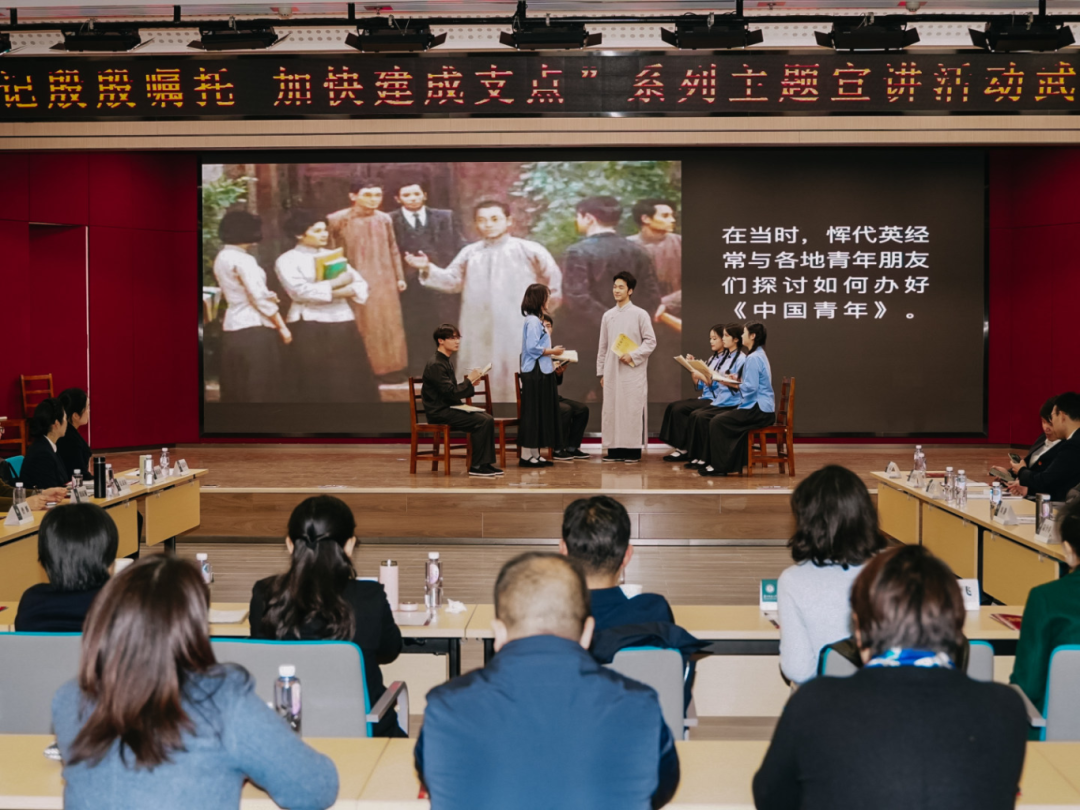 理论宣讲不仅要有“思想深度”,更要有“情感温度”。由华中师范大学马克思主义学院学生倾情演绎的红色情景剧《恽代英》,带领现场观众穿越百年时空,重温革命先烈以生命践行理想、用热血书写忠诚的壮烈篇章。剧中那句“我愿我的磷燃烧,发出光亮”久久回荡,让在场师生接受了一次深刻的精神洗礼,进一步坚定了赓续红色血脉、勇担时代使命的信念。