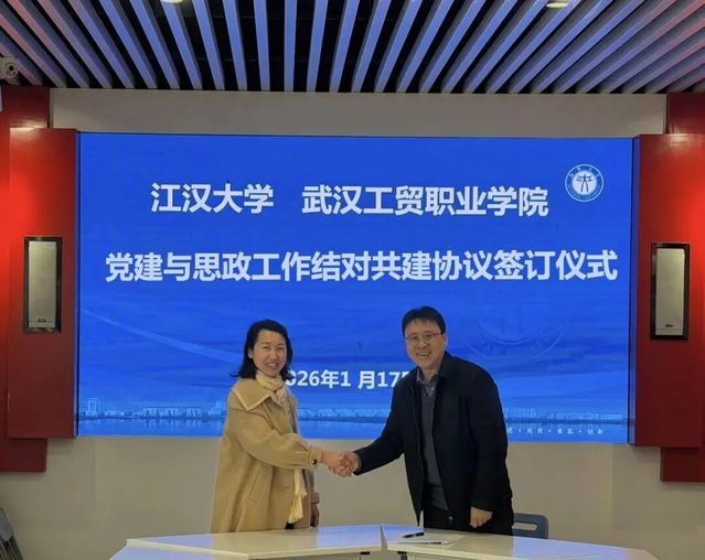 为全面贯彻新时代党的建设总要求、落实省委教育工委有关文件精神,2026年1月17日,江汉大学与武汉工贸职业学院党建与思政工作结对共建协议签订仪式成功举行。