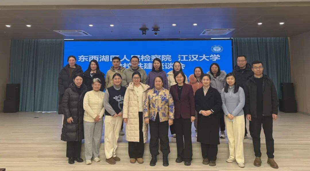 2026年1月20日下午,东西湖区人民检察院、江汉大学检校共建工作座谈会在我校行政楼216会议室举行。会议旨在深入贯彻落实最高人民检察院、教育部联合印发《关于加强新时代检察机关与高等学校合作的意见》精神,共同探索新时代背景下检校深度合作新模式,并重点围绕如何以高质量党建引领,促进党建与业务工作深度融合展开深入交流。