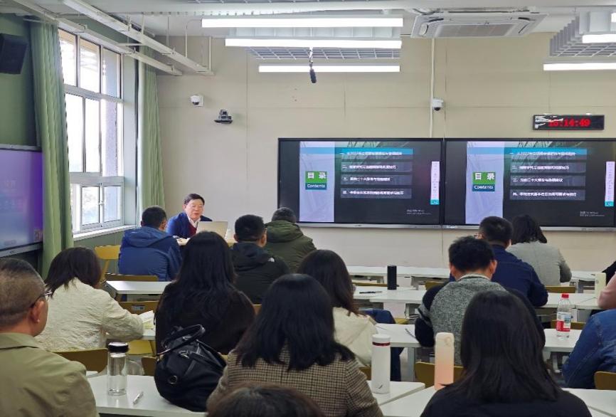 张教授首先结合2022年以来国家社会科学基金立项数据与典型案例,从宏观和微观两个维度系统剖析了当前国社科选题的整体趋势与发展方向。强调选题要紧扣国家战略需求、立足学科发展前沿,突出问题意识、强化创新导向,既要避免重复研究,又要彰显研究的学术价值与现实意义,同时结合党的二十大报告中关于马克思主义中国化时代化、中国式现代化、国家治理体系和治理能力现代化等重大部署,为在场教师精准对接国家战略、挖掘优质选题提供了具体思路和方向指引。