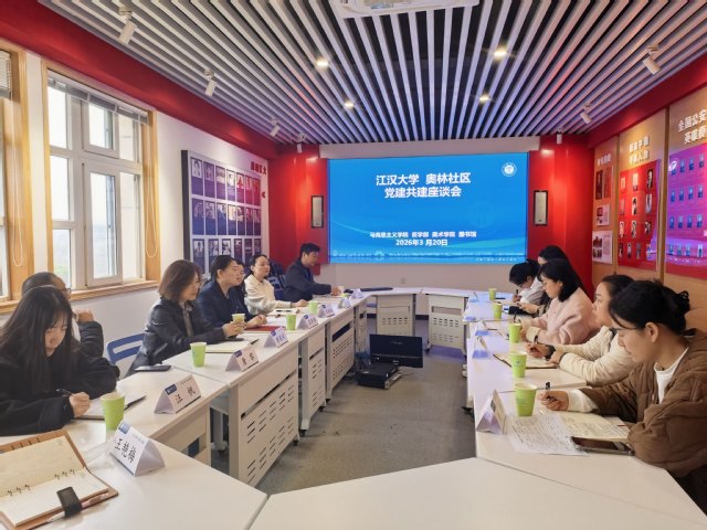 为深化校地合作,推动党建引领基层治理创新发展,3月20日上午,江汉大学与武汉经开区沌阳街道奥林社区在江汉大学马克思主义学院召开2026年党建共建座谈会。双方围绕总结共建经验、深化合作内涵、打造特色品牌等议题进行深入交流,共绘校社融合发展新蓝图。