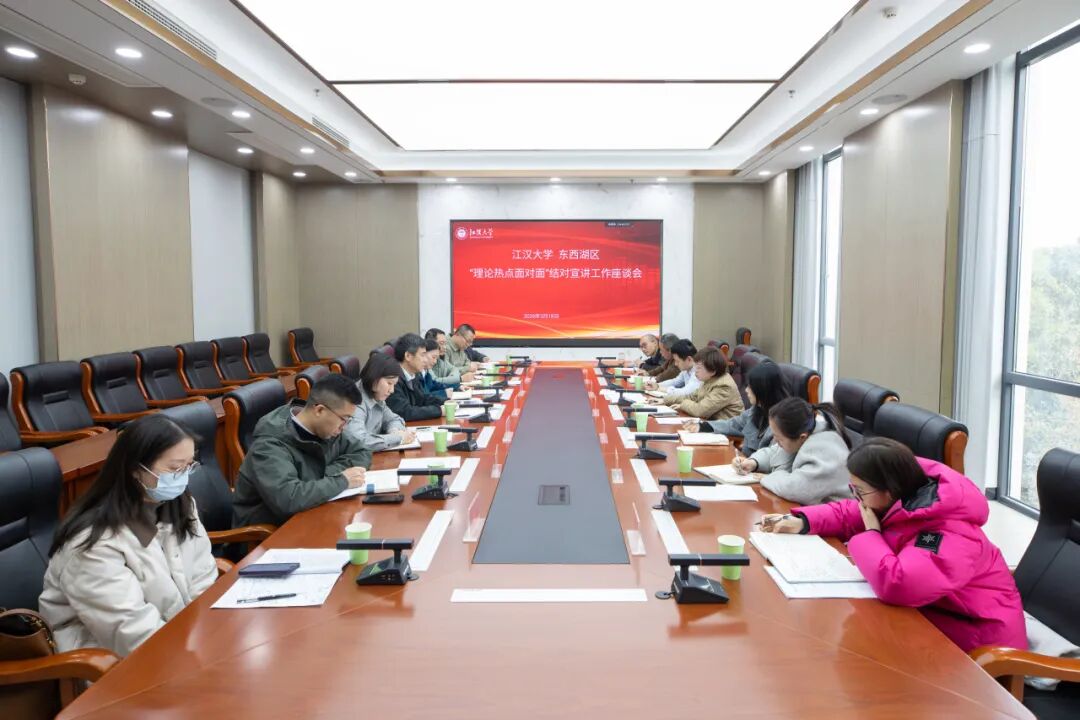 座谈会上,江汉大学马克思主义学院党委书记吕洪雁介绍了“理论热点面对面”结对宣讲工作的开展情况。2019年以来,学校立足柏泉、辐射全区,以校城融合为理念,在理论宣讲、实践调研、科技创新、“大思政课”建设、文化建设和惠民服务等领域全面深化合作,推动高校智力资源与区域发展需求深度融合,让党的创新理论飞入寻常百姓家,构建“共生、共荣、共享”的校城融合发展共同体。