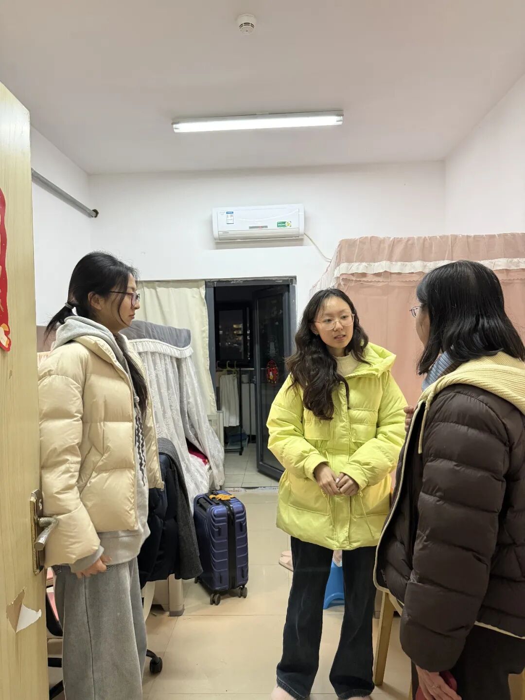 慰问过程中,学院一行走进各年级宿舍,与同学们亲切交谈、细致交流,详细询问大家假期见闻、返校适应情况、新学期科研规划与生活需求,认真倾听同学们在学习科研、就业实习、生活保障等方面的心声与建议。